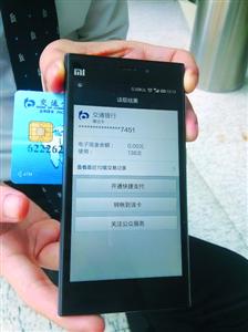 使用帶有NFC技術(shù)的手機(jī)可以直接讀出銀行卡最近的消費(fèi)記錄晨報(bào)記者 查睿 晨報(bào)記者 查睿 “無須輸密碼,手機(jī)就‘