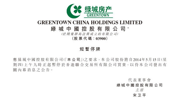 今天(5月15日)上午,綠城集團(03900.HK)與融創(chuàng)中國(01918.HK)同時宣布短暫停牌,雙方公告均